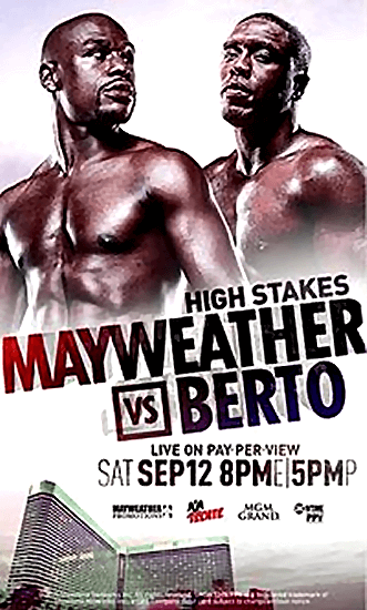 On September 12, 2015, Floyd Mayweather Jr. fought Andre Berto in a 12-round welterweight title fight at the MGM Grand in Las Vegas, Nevada. Mayweather was defending his WBC and WBA titles and the Ring Magazine championship, and the fight was promoted by Mayweather Promotions and televised on Showtime PPV.