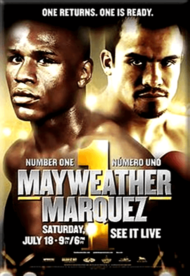 The fight was originally scheduled for July 18th but was postponed due to a rib injury suffered by Mayweather. Mayweather was guaranteed $10 million, and Marquez was guaranteed $3.2 million. Each fighter also got a percentage of the pay-per-view profits. The fight was broadcast on HBO Pay-Per-View and promoted by Mayweather Promotions and Golden Boy Promotions.